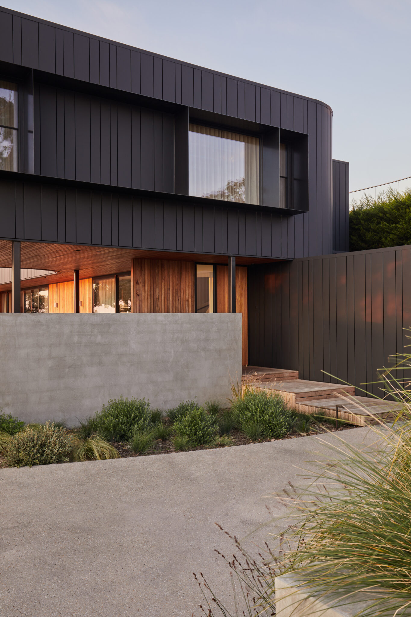 Use UniCote® Coastal steel in an Off White colour in a standard finish. The cladding should be manufactured into a vertical standing seam profile by an approved supplier to enhance the modern aesthetic of the residence.